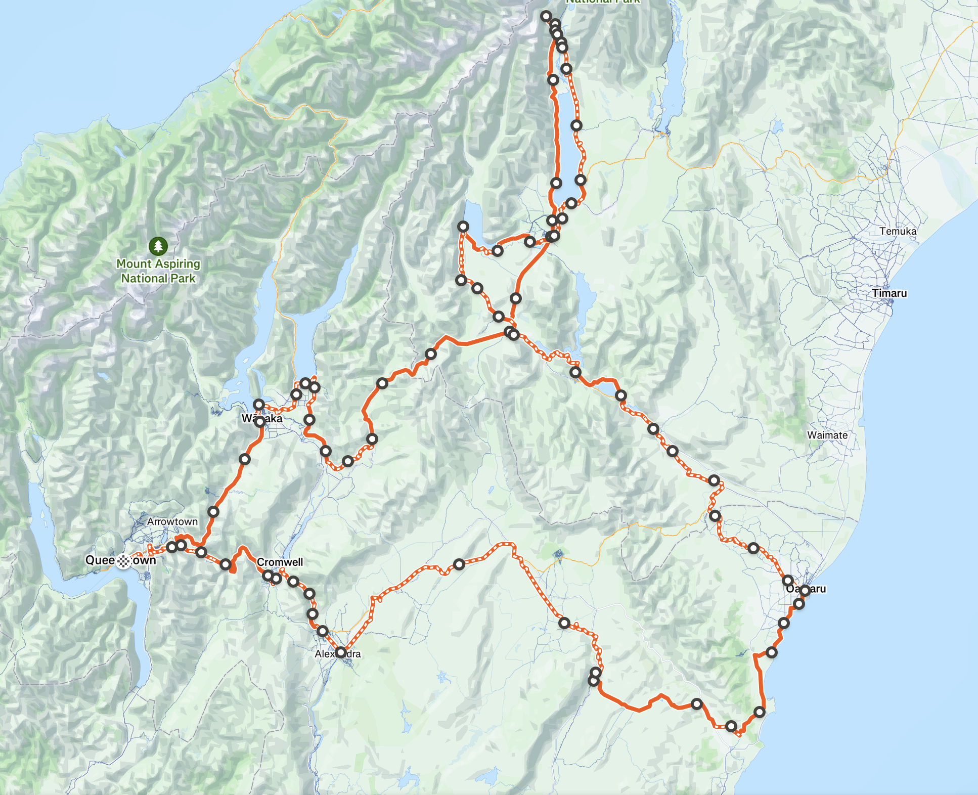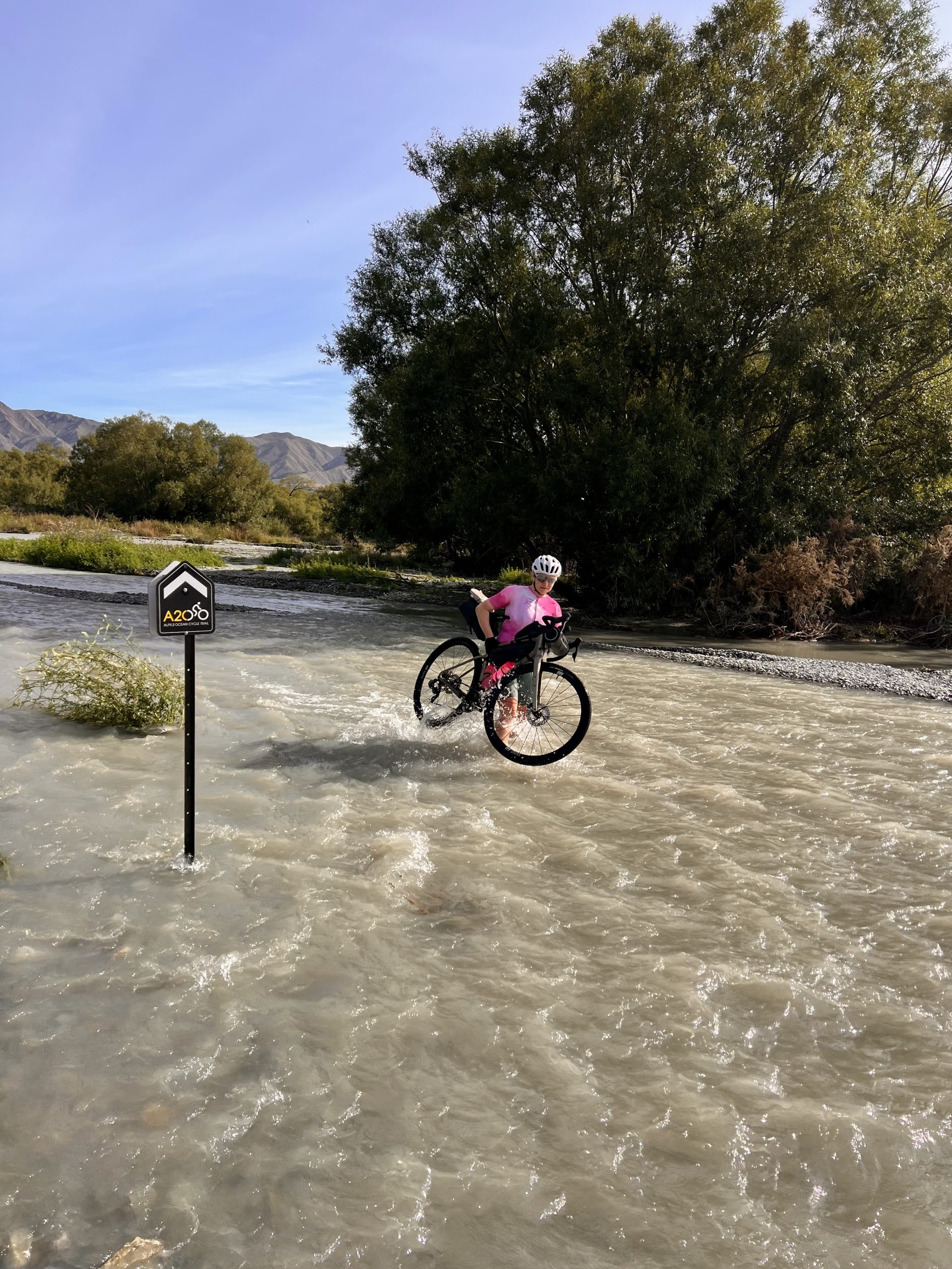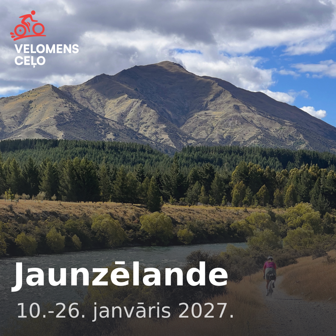 Jaunzēlandē satiksme notiek pa kreiso pusi, pie tā ir jāpierod. Pārsvarā pa ceļiem pārvietojas tūristi un mēs noteikti satiksim vēl citus riteņbraucējus, jo dienvidu sala ir ļoti populāra veloceļotāju vidū. Pamatā brauksim pa grants takām un veloceļiem, tomēr būs arī atsevišķi posmi pa šosejām. Vairāk nekā simts kilometrus veiksim pa zaļo dzelzceļu, kas ved pāri kalniem ar tiltiem un tuneļiem. Lai veiktu visu oriģinālo 300km velomaršrutu Alps2Ocean, kas vijas gar ezeriem un ir izveidots ārpus lielajiem ceļiem, mēs izmantosim helikoptera pārlidojumu ar visiem velosipēdiem, kas mūs pārcels pāri Tasmānijas upei Jaunzēlandes Alpu kalnos.